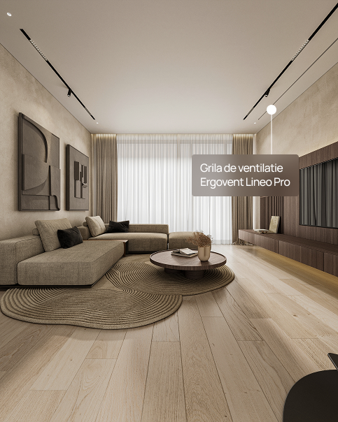 Grila Ergovent, realizata din ghips este noul trend în designul interior. Element cheie al sistemului de ventilație, poate fi vopsit la fel ca și tavanul din rigips, în care este încorporat. Rămâne vizibilă doar o fantă estetică inelară, pentru fluxul de aer.